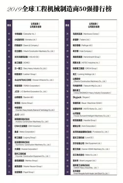 3日,2019年全球工程机械产业大会暨50强峰会发布的“2019全球工程机械制造商50强”榜单显示,此次入榜企业共来自13个国家,50强在过去一年中,整体实现销售额1910.09亿美元。