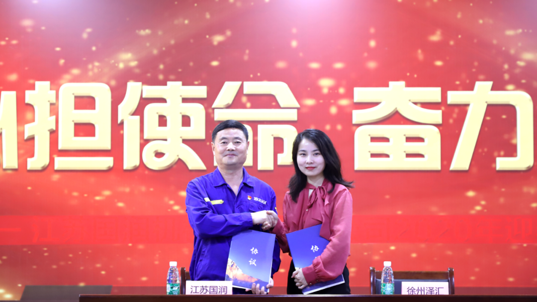 ▲爱游戏(中国)官方网站AYX SPORTS总经理郭总和泽汇公司副总经理邱总进行签约